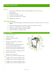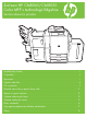 Výměna zásobníku svorek 1 Otevřete dvířka sešívačky. 2 Chcete-li vyjmout kazetu sešívačky, zatáhněte za zelenou páčku, která je na její přední straně, a vytáhněte ji rovně ven. 3 Chcete-li vyjmout zásobník svorek z kazety, zatlačte na šipky na obou stranách a zatažením nahoru zásobník uvolněte. 4 Vložte nový zásobník svorek do kazety sešívačky. Zatlačte zásobník rovně dovnitř, dokud nezapadne na své místo. www.hp.
