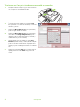 Înlocuirea cartuşelor cu capse 1 Deschideţi capacul capsatorului. 2 Pentru a scoate caseta de capse, trageţi maneta verde din partea frontală a acesteia spre înainte, apoi trageţi-o afară în linie dreaptă. 3 Pentru a scoate cartuşul cu capse din casetă, apăsaţi în locul indicat de săgeţile de pe fiecare parte, apoi trageţi cartuşul în sus pentru a-l elibera. 4 Introduceţi noul cartuş cu capse în caseta de capse. Apăsaţi cartuşul în jos în linie dreaptă până când se fixează. www.hp.