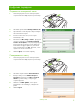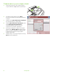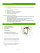 Замена картриджей сшивателя 1 Откройте дверцу сшивателя. 2 Чтобы извлечь кассету сшивателя, поднимите зеленую рукоятку, установленную в передней части кассеты, и выдвиньте ее. 3 Отожмите стрелки по краям картриджа со скрепками и извлеките его из кассеты. 4 Установите в кассету новый картридж со скрепками. Задвиньте картридж вниз до полной фиксации. www.hp.