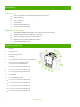การเปลี่ยนตลับลวดเย็บกระดาษ 1 เปดฝาปดที่เย็บกระดาษ 2 ในการถอดกลองลวดเย็บกระดาษออก ใหดึงดามจับสีเขียวทีด่ านหนาของกลองลวดเย็บกระดาษไปขางหนา จากนั้นดึงกลองลวดเย็บกระดาษออกมาตรงๆ 3 ในการนําตลับลวดเย็บกระดาษที่หมดแลวออกจากกลองลวดเย็บกระดาษ ใหดันลูกศรที่อยูบนดานขางแตละดานเขาขางใน จากนั้นดึงขึ้นเพื่อปลดตลับ 4 ใสตลับลวดเย็บกระดาษตลับใหมเขาไปในกลองลวดเย็บกระดาษ ดันตลับลงไปตรงๆ จนกระทั่งเคลื่อนเขาที่ www.hp.