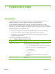 Chapter 1, Purpose and scope This chapter contains basic information about the HP CM8060/CM8050 Color