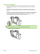2. Чтобы извлечь кассету сшивателя, нажмите на зеленый рычаг в передней части кассеты и
