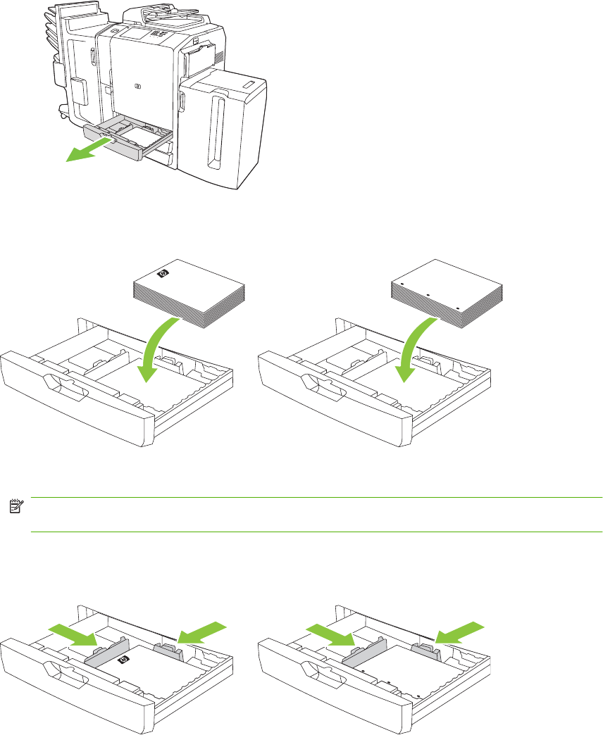 2. Tüm kağıt paketini aynı anda yerleştirin. Her zaman uzun kenarı tepsinin önüne gelecek şekilde