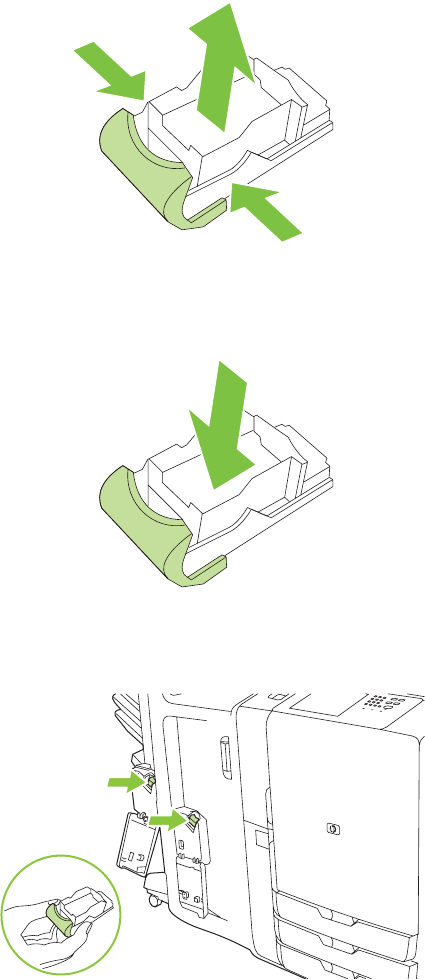 3. Zımba kartuşunu kasetten çıkarmak için, her iki tarafından ok yönünde içeri itin ve yukarı çekerek