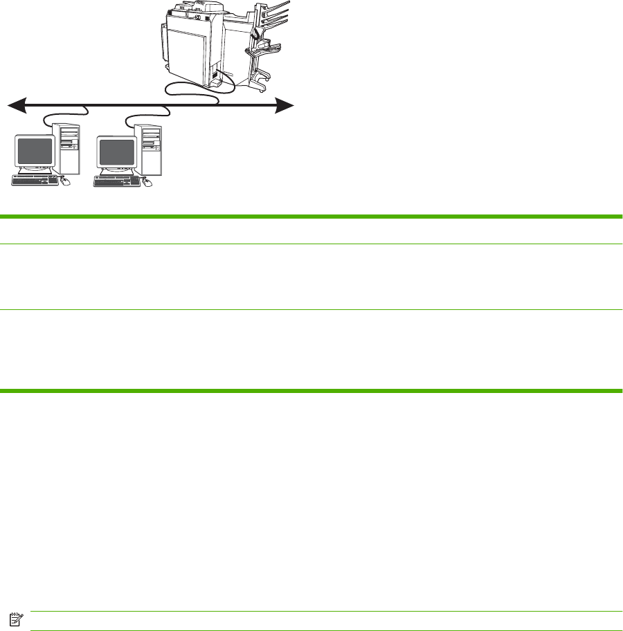 Aygıt doğrudan ağa bağlanır (doğrudan mod veya eşler arası yazdırma). Her ağ kullanıcısı