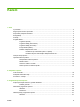 vodni žigi 210, 217 vrata nahajanje 8, 18 pogovorno okno Customization Wizard (Čarovnik za prilagoditev) 30 priloženo 6 zastoji, odpravljanje 241 vrata faksa nahajanje 10, 18 priključitev telefonske linije 19 vrata kartuše, nahajanje 8 vrata RJ-11 nahajanje 10, 18 priključitev telefonske linije 19 vzorčna stran za CMYK 114 vzorčna stran za RGB 114 W Web Jetadmin.