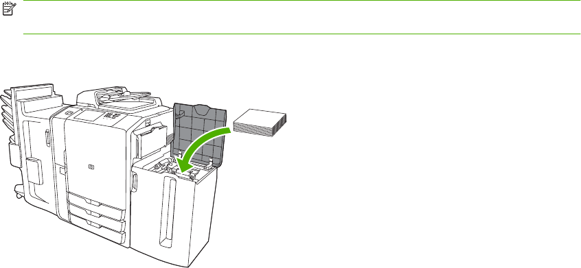 1. Open the Tray 5 top door, and load the paper. Load whole reams at a time. The tray lowers itself