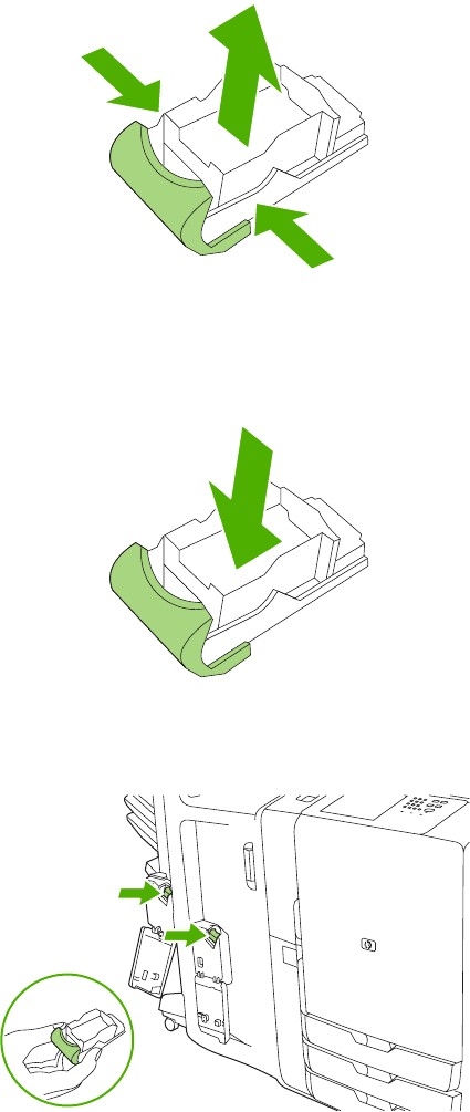 3. To remove the staple cartridge from the cassette, push in at the arrow on each side and then pull