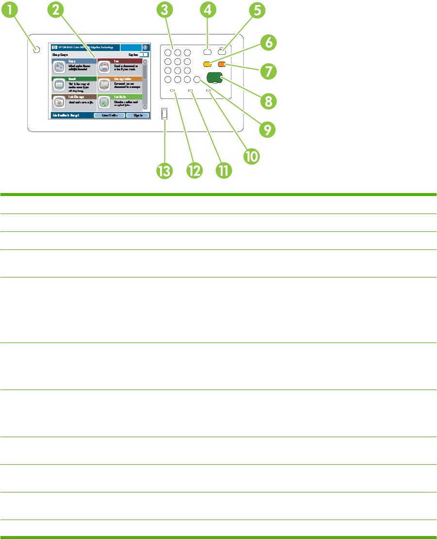 8 Przycisk Start Rozpoczynanie kopiowania, skanowania, drukowania przechowywanych zleceń