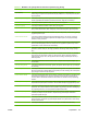 na ekranie. Opcje w tabeli uporządkowane są według kolejności ich pojawiania się na ekranie.