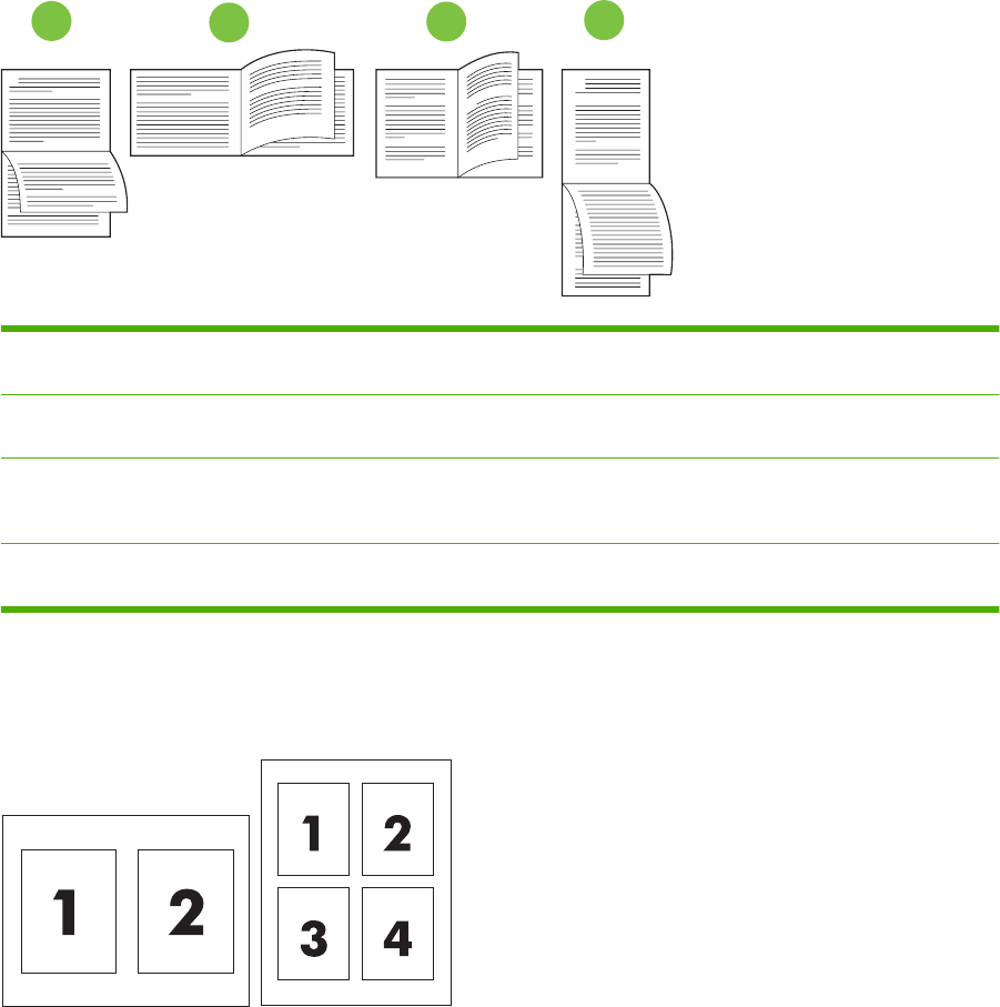 W tym miejscu przedstawiono cztery opcje orientacji druku dwustronnego. Aby wybrać opcję 1 lub 4,