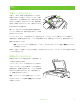 コピー 文書フィーダからのコピー 文書フィーダには、最高 100 枚の用紙をセットできます。 原稿を上向きにして文書フィーダにセットします。文書の 上端を文書フィーダの後部に向けるか、文書の上端から給 紙スロットに給紙されるようにセットします。両面原稿の 場合は、表面を上向きにセットします。原稿のサイズに合 わせて用紙ガイドを調整します。 注: レターまたは A4 サイズ用紙の使用時に最高速度のパ フォーマンスを得るには、用紙の短辺を文書フィーダの後 部に向けてセットします。 デフォルト コピー オプションを使用してコピーを作成するには、コントロール パネルの数字キーパッドを使用して 部数を選択し、[スタート] を押します。ユーザー定義を使用するには、[コピー] にタッチします。設定を指定したら、 [スタート] を押してください。 注記: コントロール パネルの [スタート] ハード ボタン、またはタッチスクリーンの [コピー開始] ボタンのどち らかを使用してください。 原稿は、文書フィーダ給紙トレイの下にある排紙トレイから取り出してください。コピーは、デバイスの左側にある排紙 トレイから取り出します。