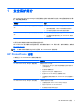 管理 管理员可以通过单击管理,然后选择 HP ProtectTools Security Manager 用户控制台左下角面板中的 管理控制台来访问“管理控制台”和“集中管理”。 有关详细信息,请参阅 HP ProtectTools 管理控制台软件帮助。 高级 您可以通过单击用户控制台左下角的高级来访问以下选项: ● 首选项—用于对 Security Manager 设置进行个性化设置。 ● 备份和恢复—用于备份和恢复 Security Manager 数据。 ● 关于—显示有关 Security Manager 的版本信息。 设置首选项 您可以对 HP ProtectTools Security Manager 设置进行个性化设置。在 Security Manager 用户控 制台中,单击高级,然后单击首选项。将在以下两个标签中显示可用的设置:常规和指纹。 “常规”标签 外观—在任务栏通知区域中显示图标 ● 要允许在任务栏中显示图标,请选中此复选框。 ● 要禁止在任务栏中显示图标,请清除此复选框。 “指纹”标签 注: 只有在计算机上安装了指纹识别器和正确的驱动程序时,才会显示指纹标签。