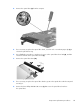 Use a flat-blade screw driver or similar tool to press on the optical drive bezel tab (2), and then