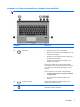 (5) Vänster knapp på styrplattan Fungerar som vänsterknappen på en extern mus.