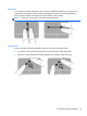 2. Tirare la linguetta di plastica (3) verso il centro del computer per collegare il disco rigido al