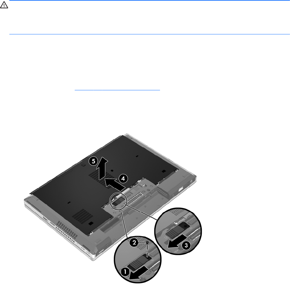 3. 將底蓋朝電腦正面滑動 (4) 然後提起 (5) 以取下底蓋。