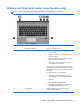 (1) Display release latch Opens the computer.
