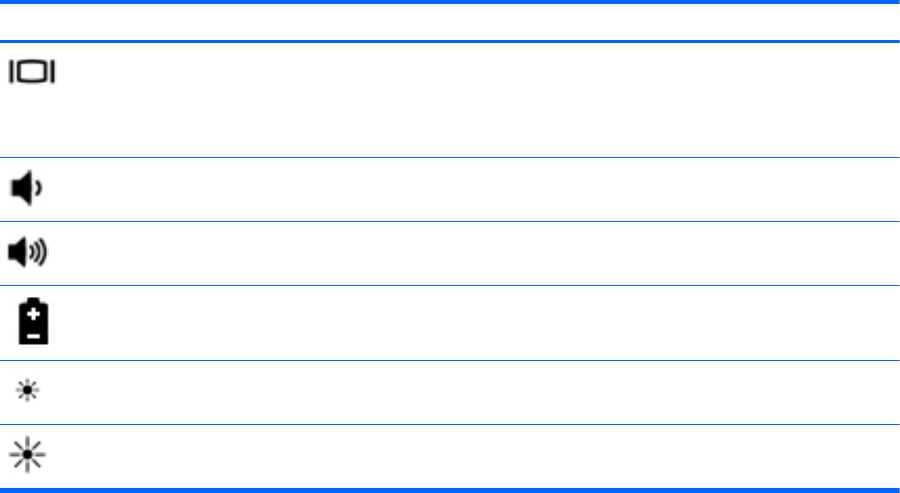 切換連接至系統的顯示器裝置間的螢幕影像。例如,如果已將顯示器連接至電腦,則按下 fn+f4 鍵時,