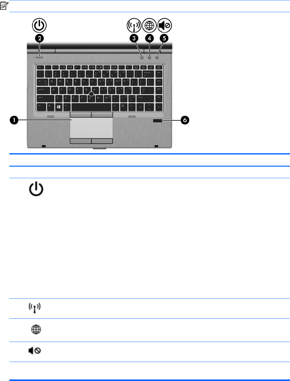 (1) Tlačítko zapnutí/vypnutí zařízení TouchPad Zapíná a vypíná zařízení TouchPad.