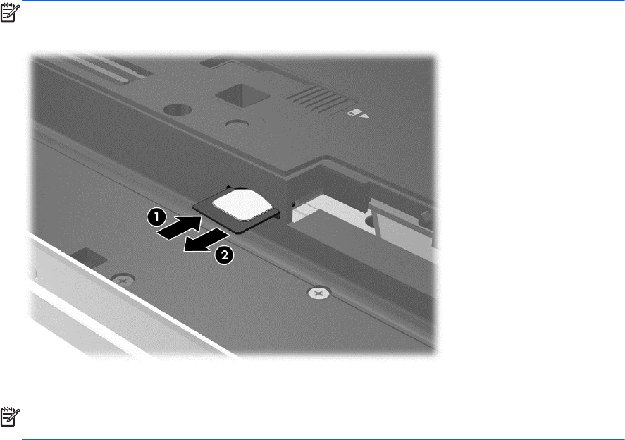 POZNÁMKA: Kartu SIM vkládejte do počítače tak, jak je znázorněno na obrázku v bateriové