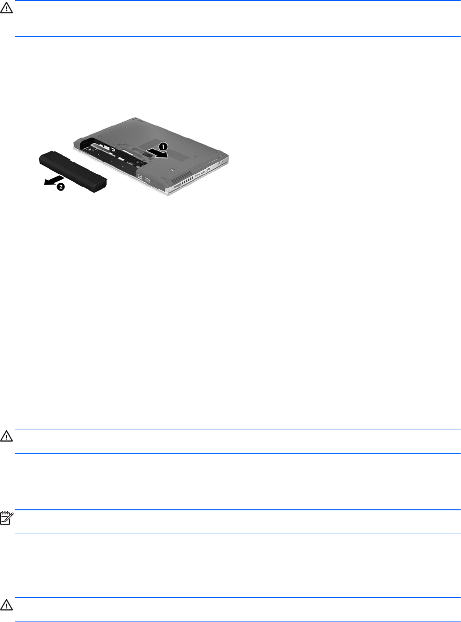 2. Posunutím západky pro uvolnění baterie (1) uvolněte baterii.