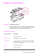 Storingen verhelpen Het bericht BLOKKADE IN LINKERACCESSOIRE verschijnt op het bedieningspaneel. Opmerking 1 Verplaats het apparaat van de printer af. 2 Verwijder al het afdrukmateriaal uit gebieden waar blokkades kunnen optreden. 3 Bevestig het apparaat opnieuw. Wacht tot het gebruikerslichtje groen wordt. Zorg bij het verhelpen van blokkades dat het afdrukmateriaal niet scheurt. Zelfs als er zeer weinig afdrukmateriaal in het apparaat achterblijft, kan dit opnieuw papierstoringen veroorzaken.