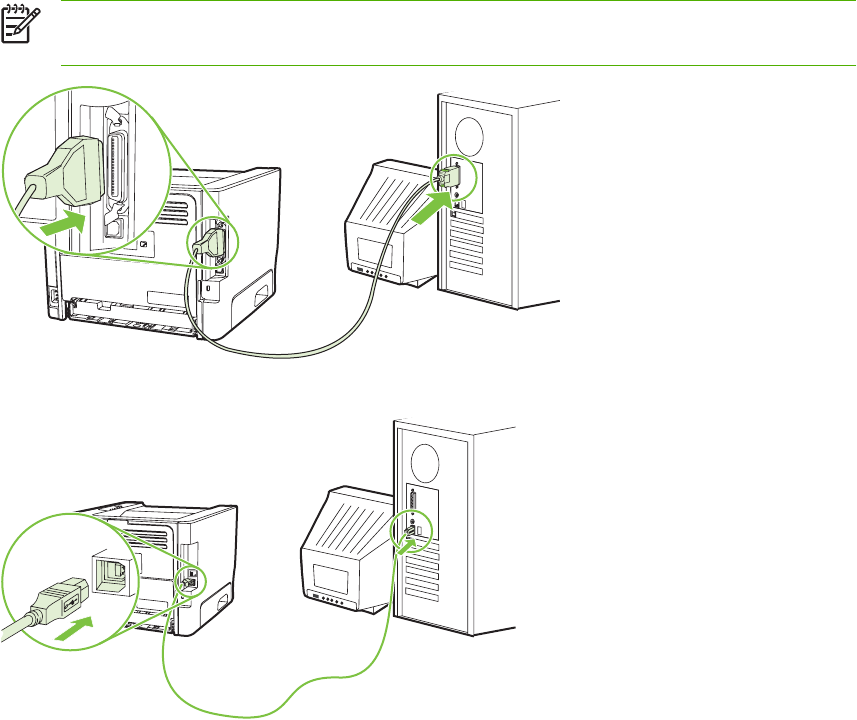 OBS! Under installationen uppmanas du att ansluta en parallell- eller USB-kabel. Se