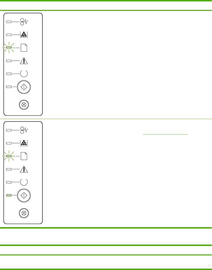 Lampstatus Skrivarens status Åtgärd