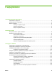 Съдържание 1 Основни положения за продукта Сравнение на продукти ...................................................................................................................... 2 Характеристики на принтера ............................................................................................................. 2 Кратко описание ................................................................................................................................. 4 Изглед отстрани и отпред .............