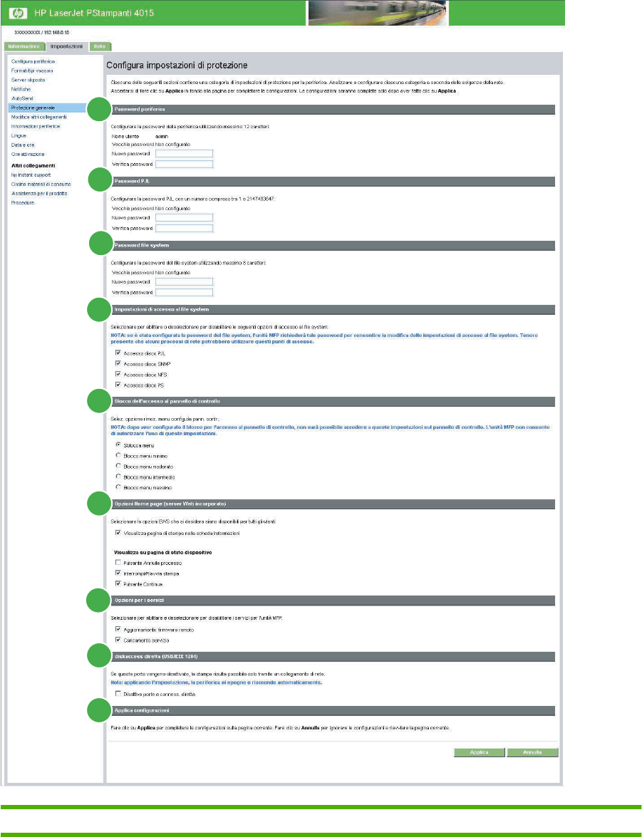 Figura 3-9 Schermata Configura impostazioni di protezione