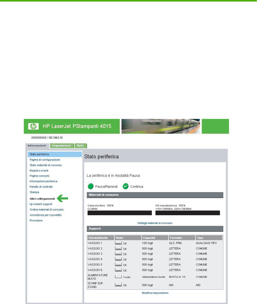 - Visualizzazione dello stato del prodotto dalle schermate della scheda Informazioni del HP EWS