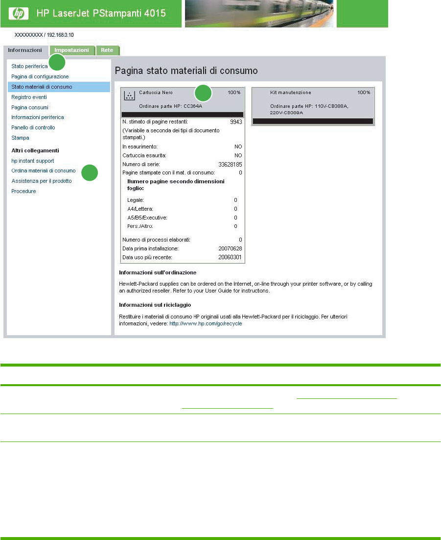 Figura 2-3 Schermata Pagina stato materiali di consumo