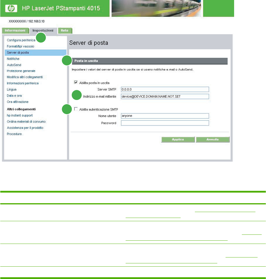 3 Indirizzo e-mail mittente Indirizzo e-mail della periferica visualizzato nelle notifiche relative