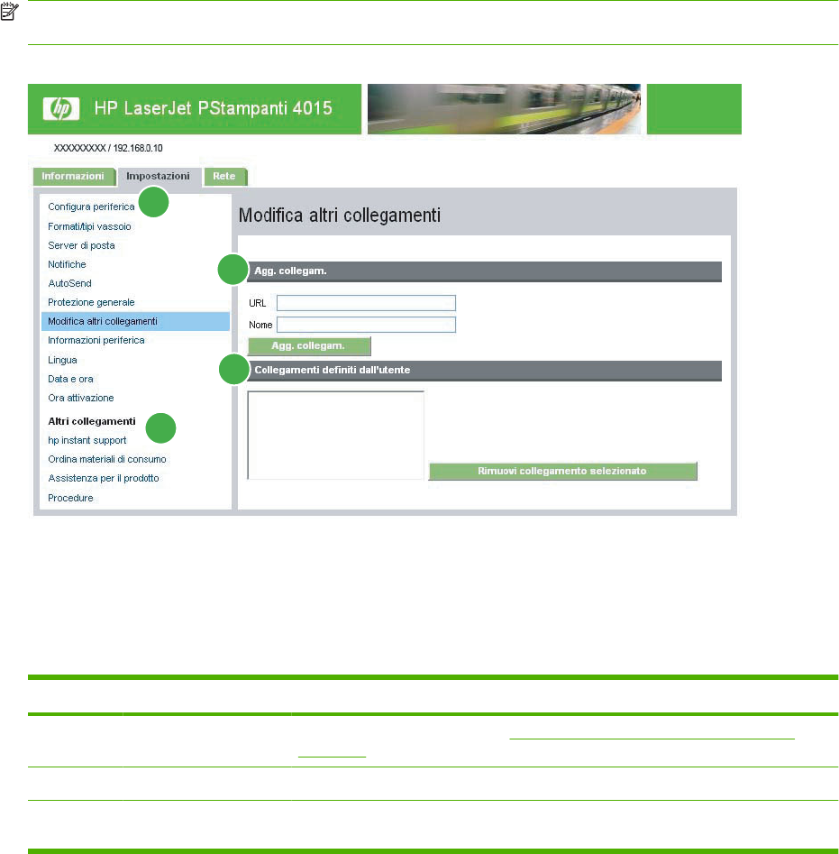 È possibile utilizzare la schermata Modifica altri collegamenti per aggiungere o personalizzare un