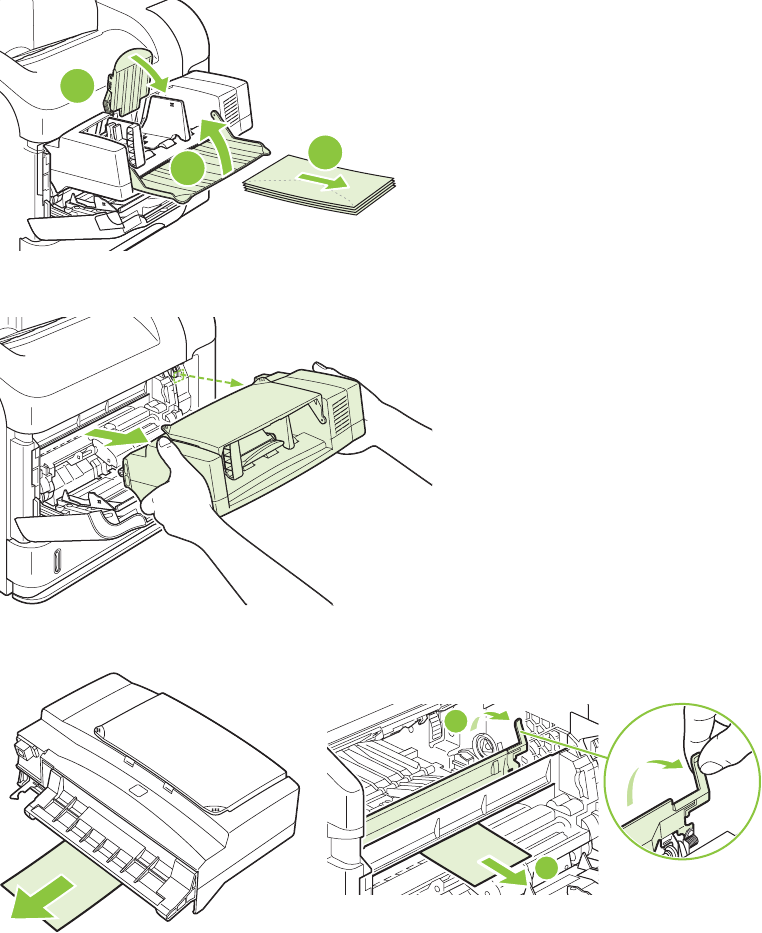 3. Poista juuttuneet kirjekuoret hitaasti kirjekuorilokerosta ja laitteesta.