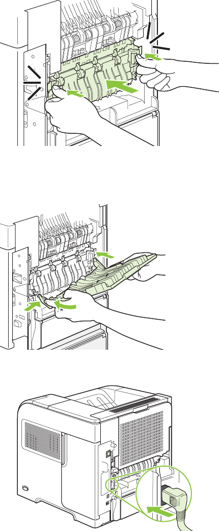 8. Kiinnitä takatulostelokero paikalleen. Aseta saranan oikeanpuoleinen tappi laitteen sisällä olevaan