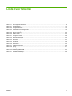 Liste over tabeller Tabel 1-1 Tabel 2-1 Tabel 2-2 Tabel 2-3 Tabel 2-4 Tabel 2-5 Tabel 2-6 Tabel 3-1 Tabel 3-2 Tabel 3-3 Tabel 3-4 Tabel 3-5 Tabel 3-6 Tabel 3-7 Tabel 3-8 Tabel 3-9 Tabel 3-10 Tabel 4-1 DAWW HP Integreret Webserver ................................................................................................................... 8 Enhedsstatus ...................................................................................................................................