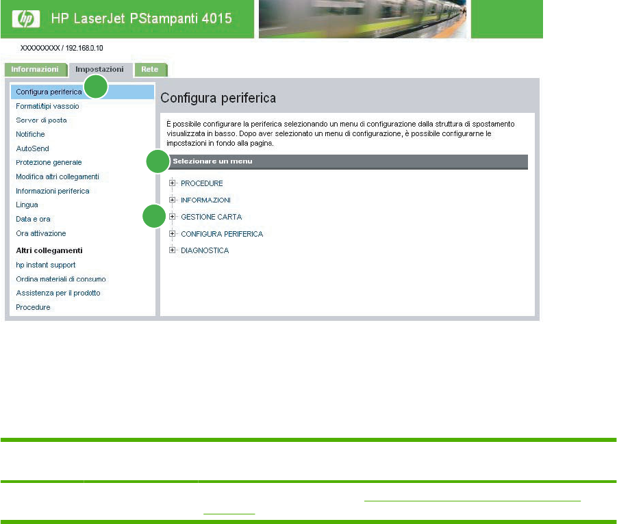 28 Capitolo 3 Configurazione del prodotto mediante le schermate della scheda Impostazioni ITWW