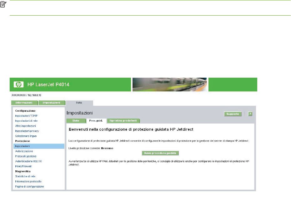 Figura 3-10 Configurazione di protezione guidata HP Jetdirect