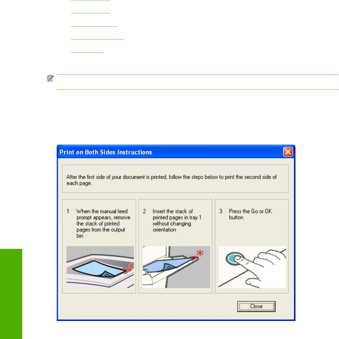 print, and then the following dialog box appears with instructions to complete the manual duplex process.