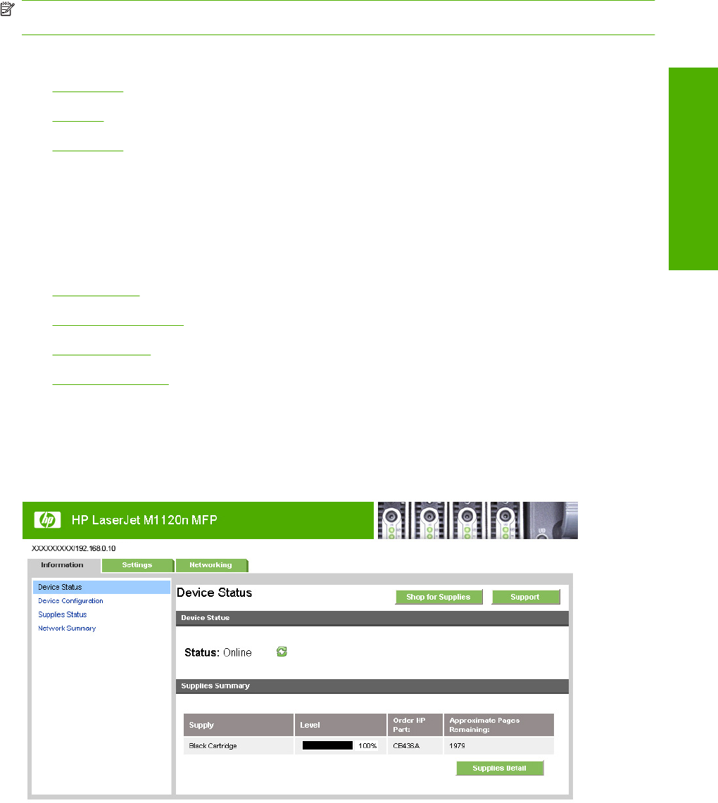 ENWW HP Embedded Web Server (HP LaserJet M1120n MFP only) 19