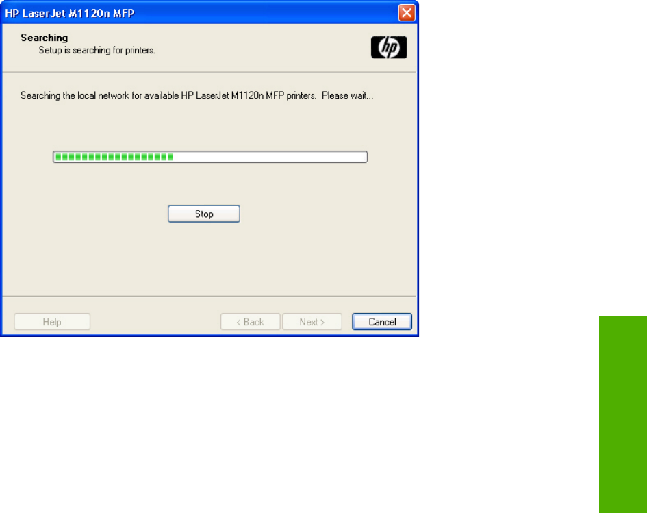 Click Stop to stop the search for printers. The search is paused until you click Restart to continue