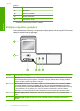 Etiketė Pavadinimas ir aprašas 5 Cancel (atšaukti): Sustabdo dabar atliekamą veiksmą, išeina iš meniu arba iš nustatymų. 6 Red Eye Removal (šalinti raudonų akių efektą): Įjungia arba išjungia priemonę Red Eye Removal (šalinti raudonų akių efektą). Numatyta, kad funkcija yra išjungta. Kai funkcija įjungta, HP Photosmart automatiškai koreguoja raudoną akių spalvą tuo metu ekrane rodomoje nuotraukoje.