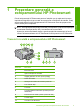 1 Prezentare generală a echipamentului HP Photosmart Notă Acest ghid prezintă operaţiuni de bază şi de depanare şi oferă informaţii despre contactarea asistenţei tehnice HP şi comandarea de consumabile. Ajutorul pe ecran oferă detalii despre o gamă completă de caracteristici şi funcţii, inclusiv utilizarea software-ului HP Photosmart livrat împreună cu HP Photosmart.
