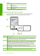 Capitol 1 (continuare) * Etichetă Descriere 12 Port Ethernet 13 Port USB din spate 14 Uşa din spate Utilizaţi numai adaptorul de curent furnizat de HP. Română Caracteristicile panoului de control Diagrama următoare şi tabelul corelat acesteia, vă oferă o referinţă rapidă la caracteristicile panoului de control al echipamentului HP Photosmart. Etichetă Nume şi descriere 1 Display (Ecran): Afişează meniurile, imaginile şi mesajele. Afişajul cu ecran tactil poate fi reglat în poziţii diferite.