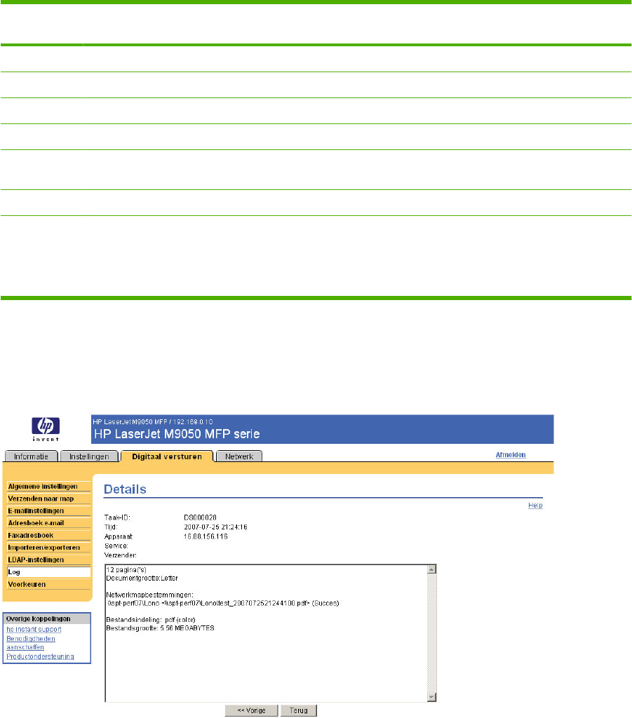 Als u op de knop Details klikt op het scherm Log, verschijnt het scherm Details. Dit scherm geeft