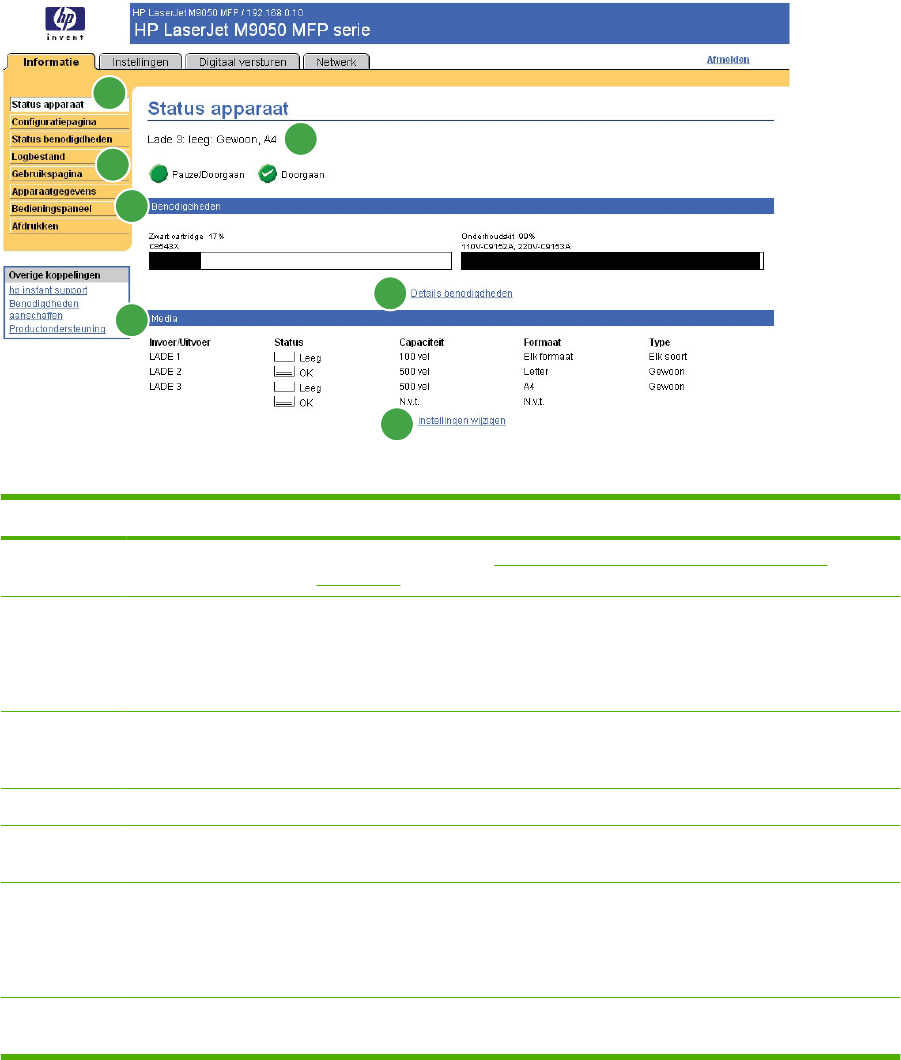 12 Hoofdstuk 2 De productstatus bekijken op de informatieschermen van de HP EWS NLWW