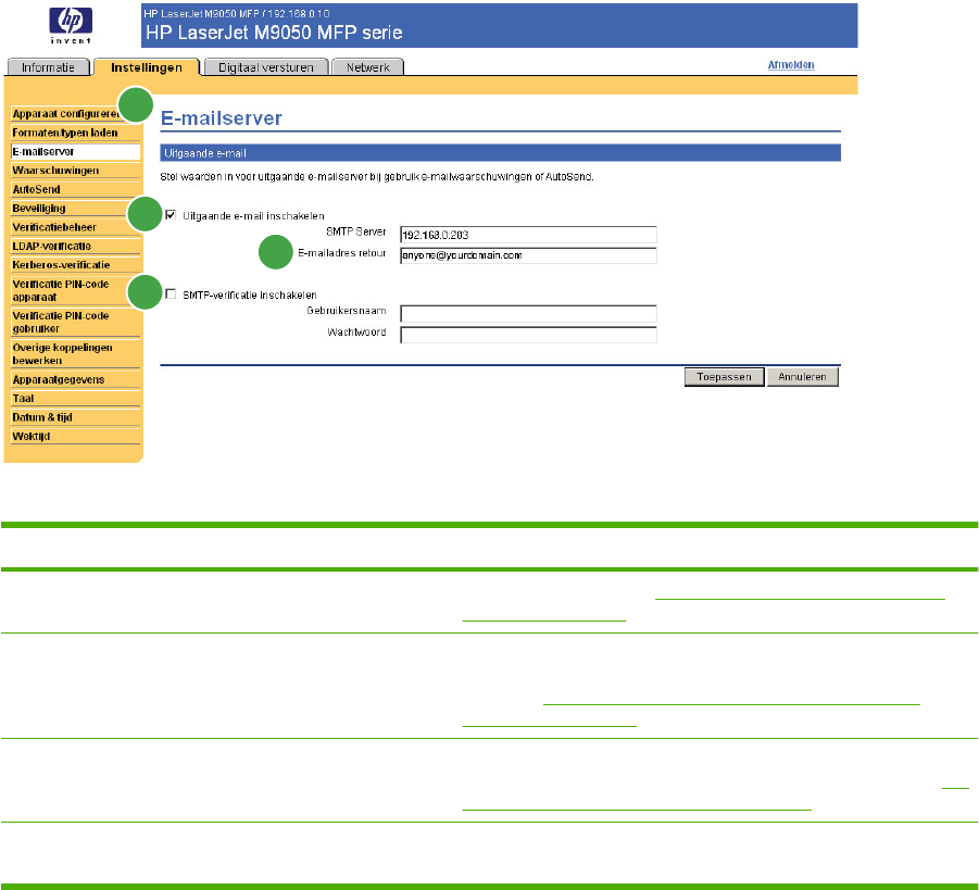 2 Uitgaande e-mail inschakelen Hiermee kunt u de uitgaande e-mail configureren als u de functies