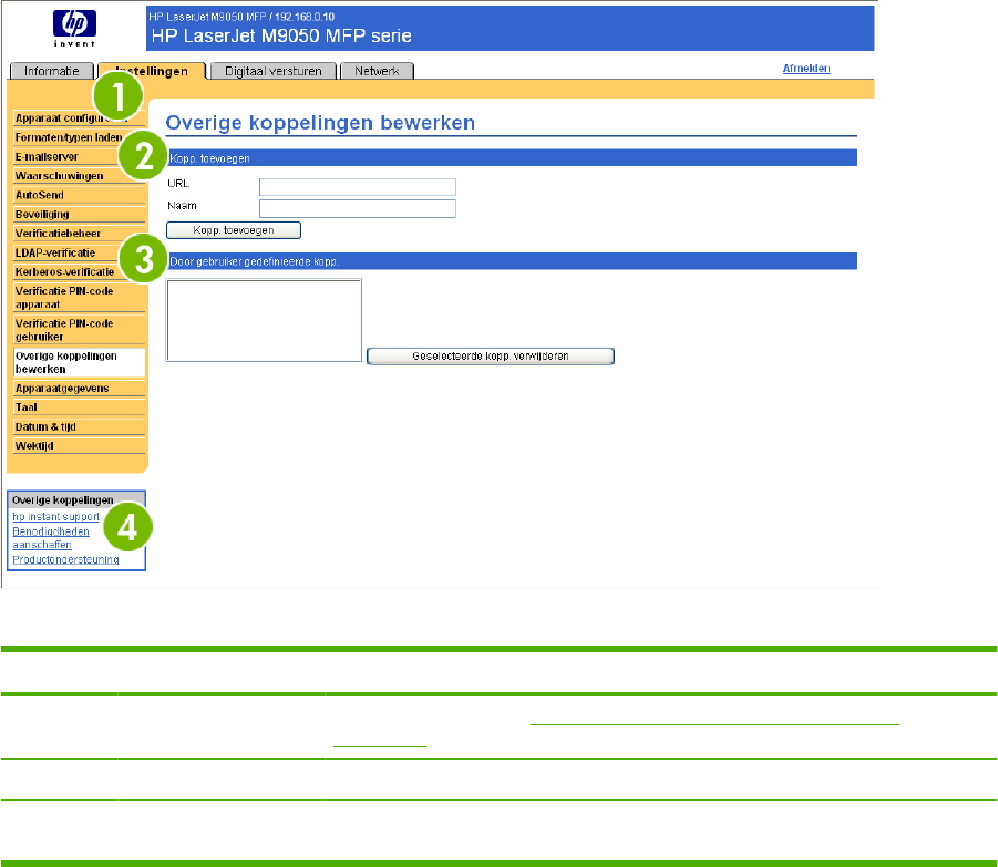 Gebruik het scherm Overige koppelingen bewerken om maximaal vijf koppelingen aan de gewenste